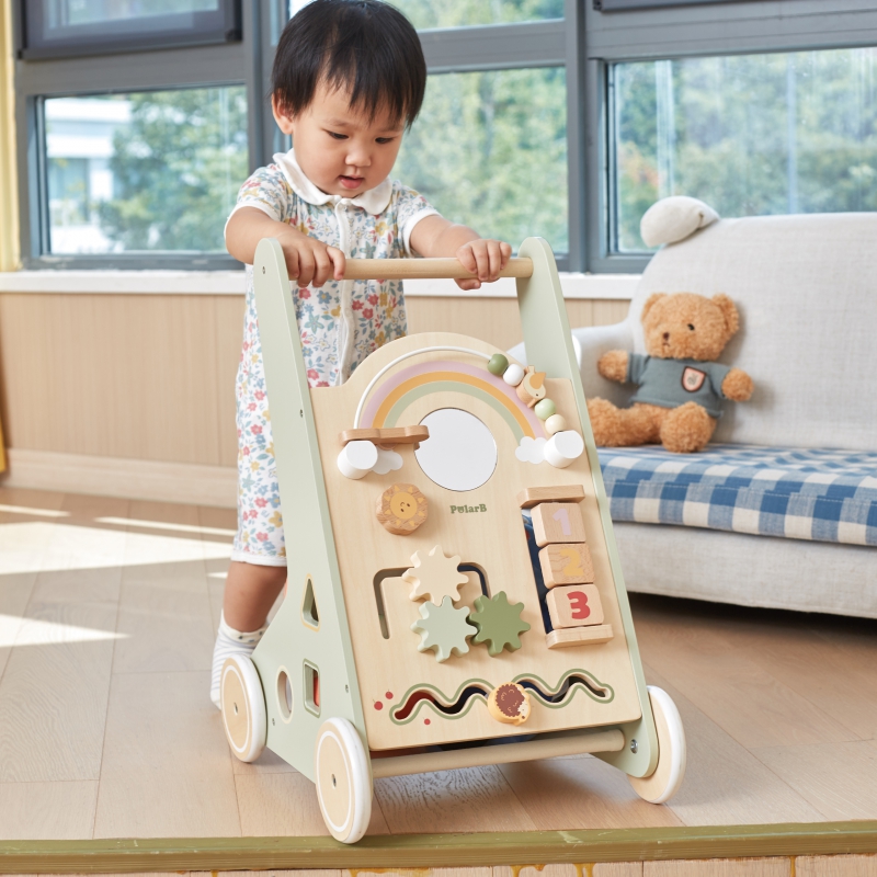 VIGA PolarB edukacinis stumdukas – tai žaislas, kuris ne tik padeda vaikui žengti pirmuosius žingsnius, bet ir siūlo daugybę veiklų smagiam bei naudingam laikui. Stumduke įrengti sukamieji elementai, flipboard tipo lentelės, spalvingi karoliukai, stumdomoji plokštelė, veidrodėlis ir figūrėlių rūšiavimo skyrius. Visa tai lavina vaiko pojūčius, motorinius įgūdžius bei pažintinę raidą. Žaislas suteikia galimybę vaikui tyrinėti pasaulį, lavinti rankų judesius, spalvų ir formų pažinimą. Stumdukas taip pat padeda mažyliui įgyti pasitikėjimo savimi mokantis vaikščioti. Ant galinės dalies yra drobinis krepšelis, skirtas laikyti žaislams ar kitiems smulkiems daiktams.