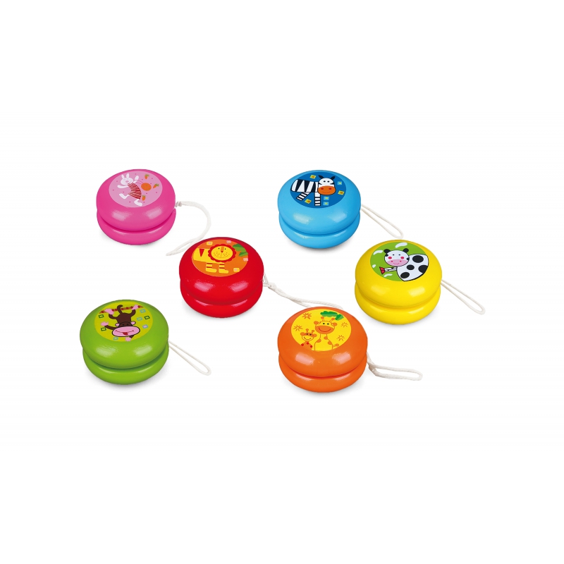 Spalvotas medinis jojo – klasikinis žaislas, kuris užtikrina smagią ir įtraukiančią pramogą vaikams. Jojo populiarus visame pasaulyje jau daugelį kartų, nes ne tik suteikia daug džiaugsmo, bet ir lavina koncentraciją, reakciją bei rankų–akių koordinaciją.
