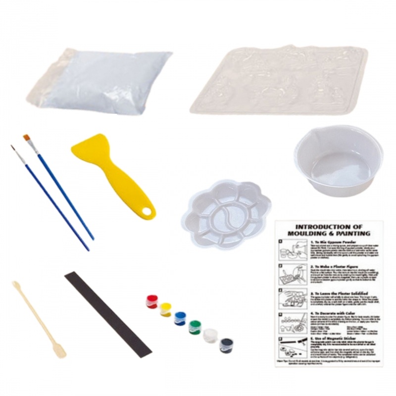 - Pilnas komplektas – viskas, ko reikia pradėti iš karto (gipsas, formos, dažai ir kt.).
