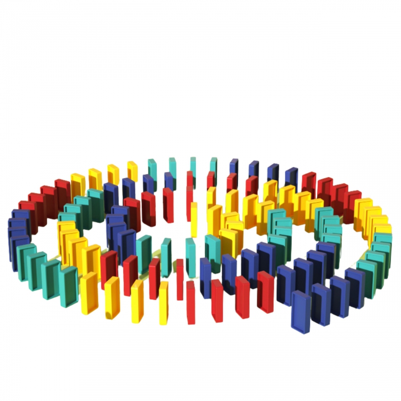 - Domino kaladėlės (oranžinės, mėlynos, žalios)
