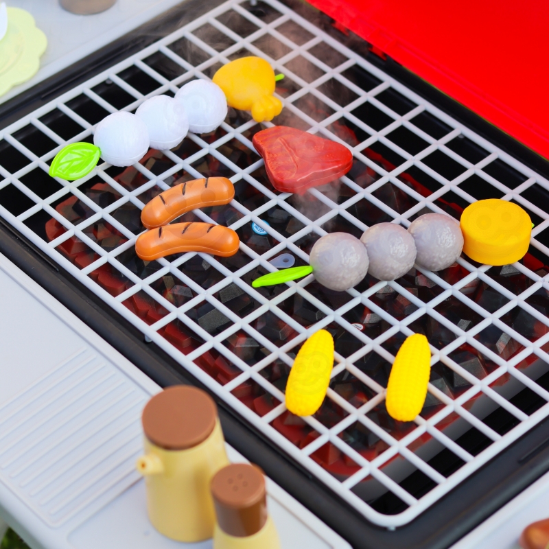 - Rinkinyje gausu virtuvės įrankių, indų, prieskonių ir įvairių žaislinių maisto produktų grilinimui