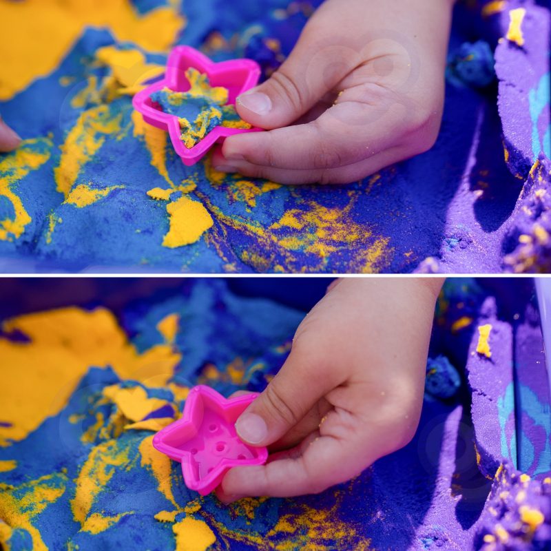 - 0.6 kg spalvoto kinetinio smėlio (3 spalvos)