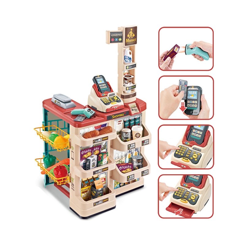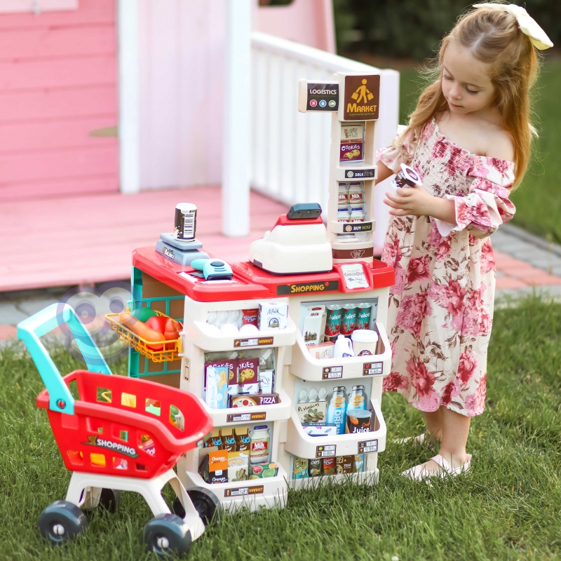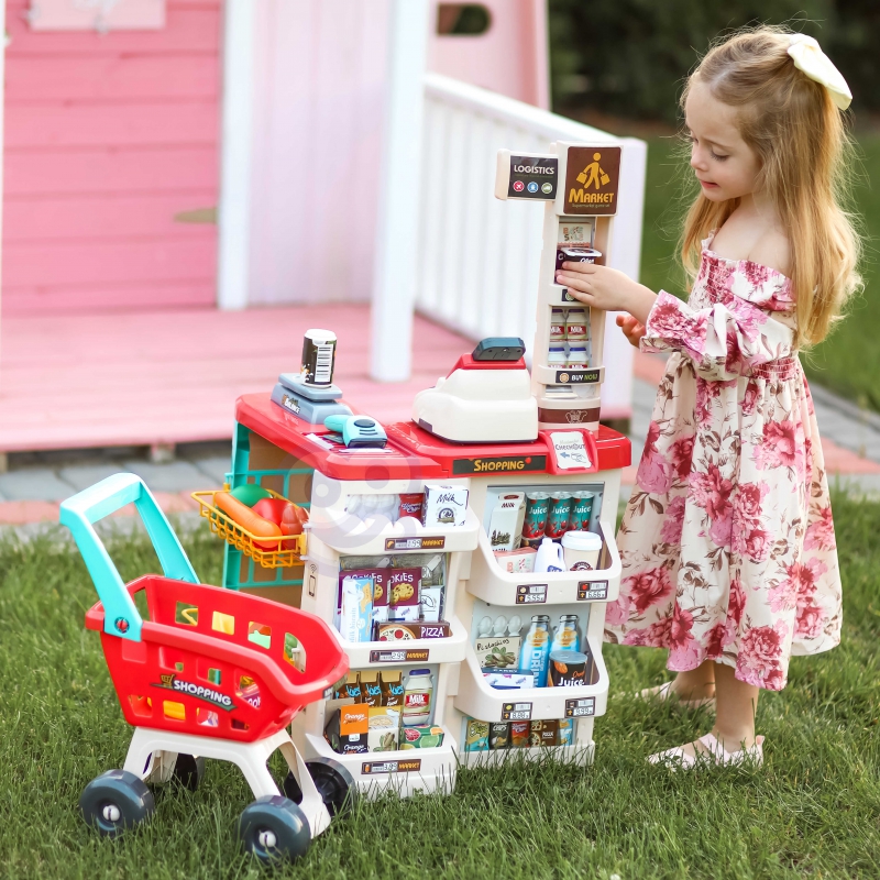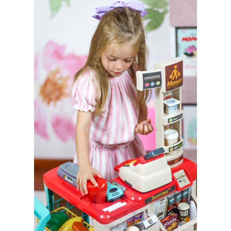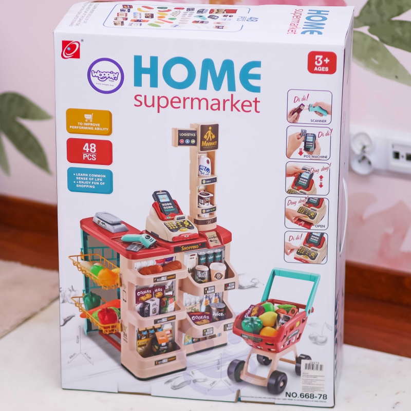 Interaktyvus Woopie prekybos centras su pirkinių vežimėliu ir priedais – tai puikus žaidimų rinkinys vaikams nuo 3 metų. Mažieji mėgsta mėgdžioti savo tėvus, todėl šis rinkinys leidžia pasinerti į parduotuvės pasaulį, lavinti vaizduotę, kūrybiškumą bei socialinius įgūdžius. Komplekte yra viskas, ko reikia mažajam pardavėjui: kasa su terminalu, svarstyklės, skaitytuvas, žaisliniai pinigai, banko kortelė ir įvairūs maisto produktai. Pirkinių vežimėlis suteikia galimybę žaisti kartu su draugais ir kurti smagius apsipirkimo scenarijus.